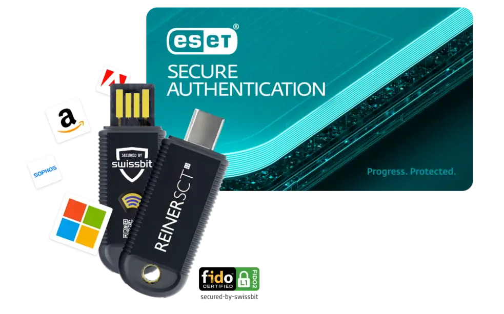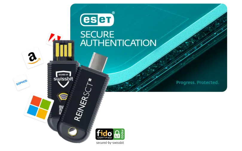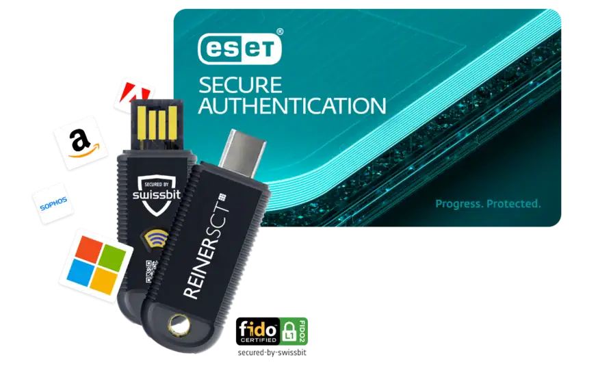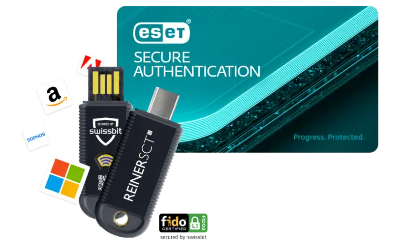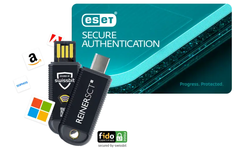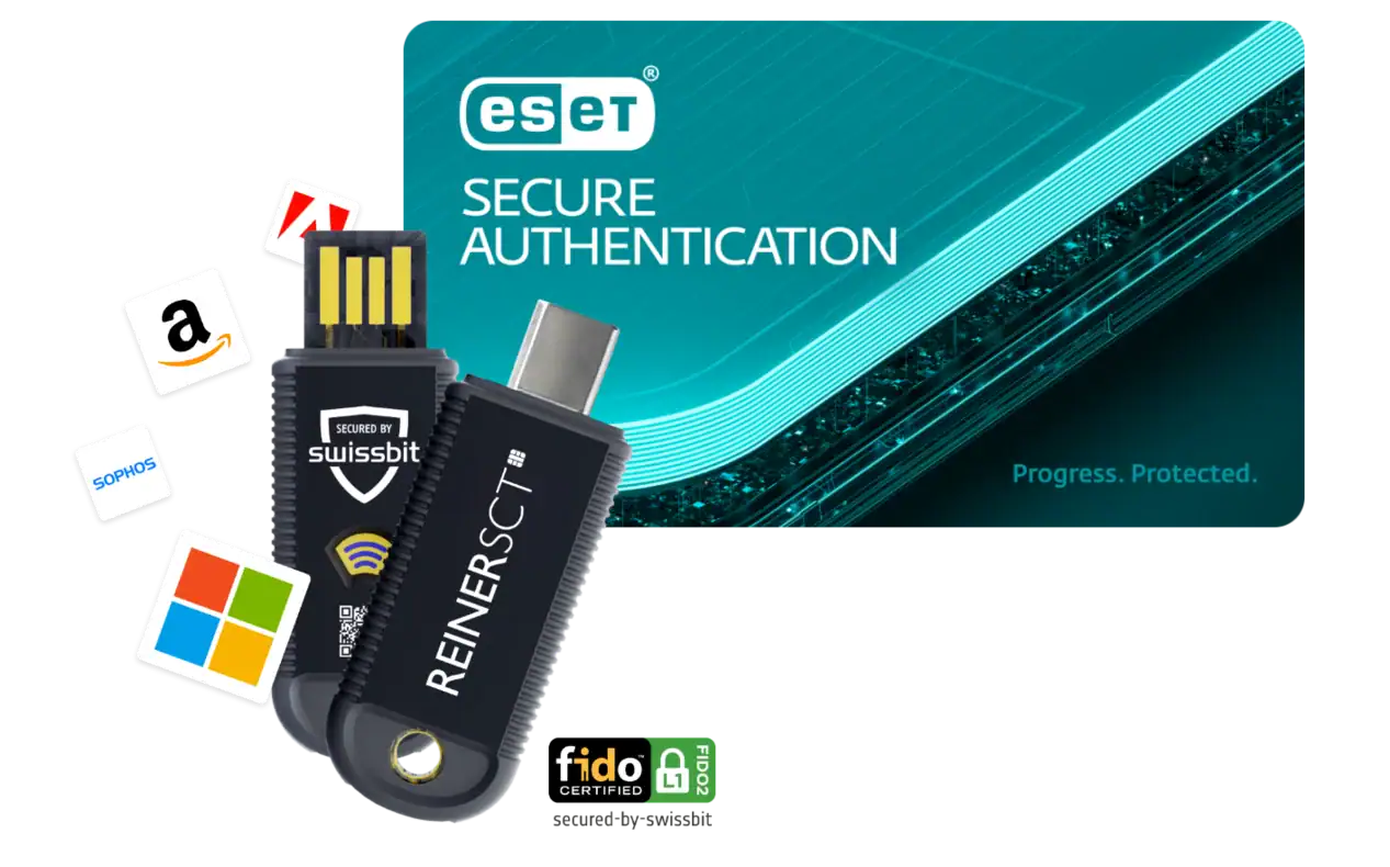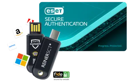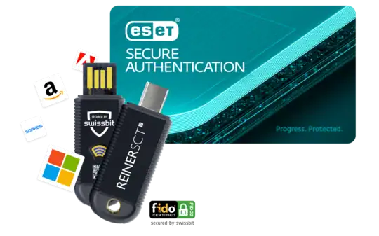 Das Bundle kombiniert die ESET Secure Authentication für Multi-Faktor-Authentifizierung (MFA) mit dem REINER SCT FIDO Stick Pro, einem FIDO2- und U2F-Sicherheitsschlüssel. Gemeinsam ermöglichen sie eine sichere und benutzerfreundliche Anmeldung an Systemen, Cloud-Diensten und Remote-Zugängen.