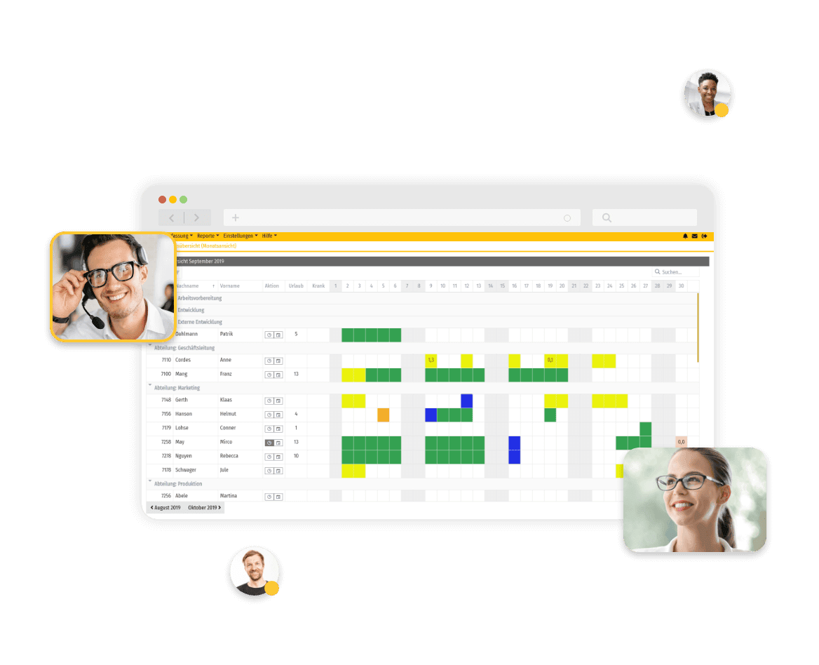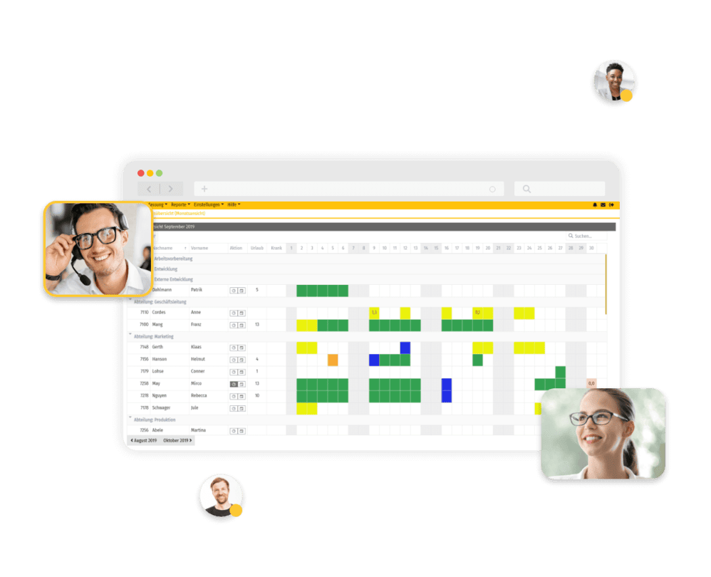 Mit der Abwesenheitsübersicht seines Teams ist der Vorgesetzte stets über geleistete sowie anstehende Abwesenheiten informiert. Ihr Mitarbeiter wird per E-Mail informiert, ob sein Urlaubsantrag bewilligt oder abgelehnt wurde.