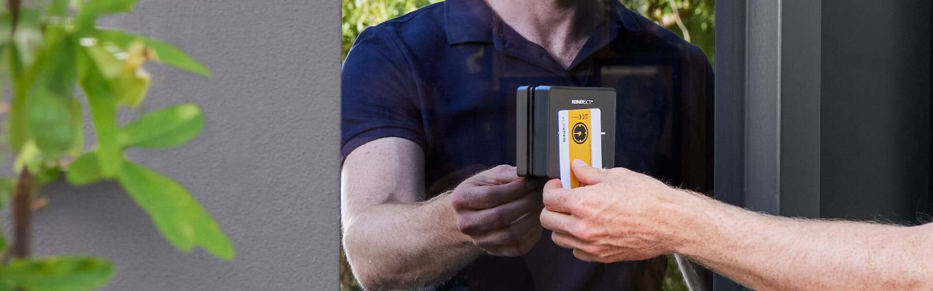 Der externe RFID-Leser V3 für die timeCard Zutrittskontrolle ist ein RFID-Wandleser für timeCard ID-Karten oder timeCard Transponder. Er kann mittels Aufputzmontage im Innenbereich oder im geschützten Außenbereich installiert werden.